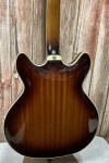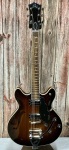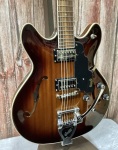 Unleash your inner rockstar with the Guild Starfire I DC in a mesmerizing California Burst finish. This semi-hollow electric guitar boasts a double-cutaway design crafted from premium mahogany or maple, offering both style and superior sound. The solid mahogany center block minimizes feedback, ensuring a clean, rich tone, while the Modern Thin U mahogany neck provides effortless playability. Equipped with HB-2 humbucking pickups featuring Alnico II magnets, this guitar delivers a powerful, dynamic sound perfect for any genre. With its Indian rosewood fingerboard and 24.75" scale length, it offers a smooth, comfortable playing experience. The Guild Tune-o-matic bridge and Vibrato tailpiece, along with Vintage 18 tuners, ensure precise tuning and stability. Ideal for musicians seeking legendary tone and style at an exceptional value, the Starfire I DC is your ticket to unforgettable performances.