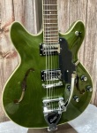 Unleash your musical creativity with the Guild Starfire I DC in stunning Emerald Green. This double-cutaway semi-hollow guitar, crafted from premium mahogany or maple, offers a rich, resonant sound with its arched top and solid mahogany center block to minimize feedback. The modern Thin U mahogany set neck and Indian rosewood fingerboard ensure smooth playability across its 24.75" scale length. Equipped with HB-2 humbucking pickups featuring Alnico II magnets, this guitar delivers a warm, vintage tone with versatile control options, including coil-split switches. The Guild Tune-o-matic bridge and Vibrato tailpiece, along with Guild Vintage 18 tuners, provide exceptional tuning stability and expressive vibrato effects. Perfect for both stage and studio, the Starfire I DC is designed for musicians who demand quality and style.