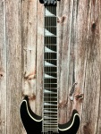 - Available in Satin Black with white binding, matching Jackson pointed 7-in-line headstock and black hardware