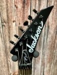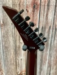 This axe is also equipped with dual volume knobs, three-way toggle switch, Floyd Rose® Special double-locking bridge system, Dunlop® dual-locking strap buttons and Jackson pointed 6-in-line headstock.