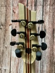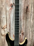 The ebony fingerboard is adorned with bold offset brass ring inlays, while the ultra-thin “C” neck shape and 12”-16” compound radius ensure unmatched speed and comfort. With 24 X-Jumbo stainless steel frets, durability and precision are taken to the extreme.