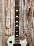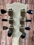This guitar retains the original Grover tuners for reliable tuning accuracy, and the red Gibson logo truss rod cover ties into the custom aesthetic. The body and neck are finished in a unique see-through white satin, presenting a distinctive look that stands out visually without masking the natural wood grain.