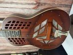 Used 2011 National M1 Tricone resonator guitar features a mahogany body, mahogany neck, and ebony fretboard. Key specifications include three 6" resonators, a T-bridge, ivoroid binding, mother-of-pearl fret markers, and a scale length of 650 mm (25.59inches)